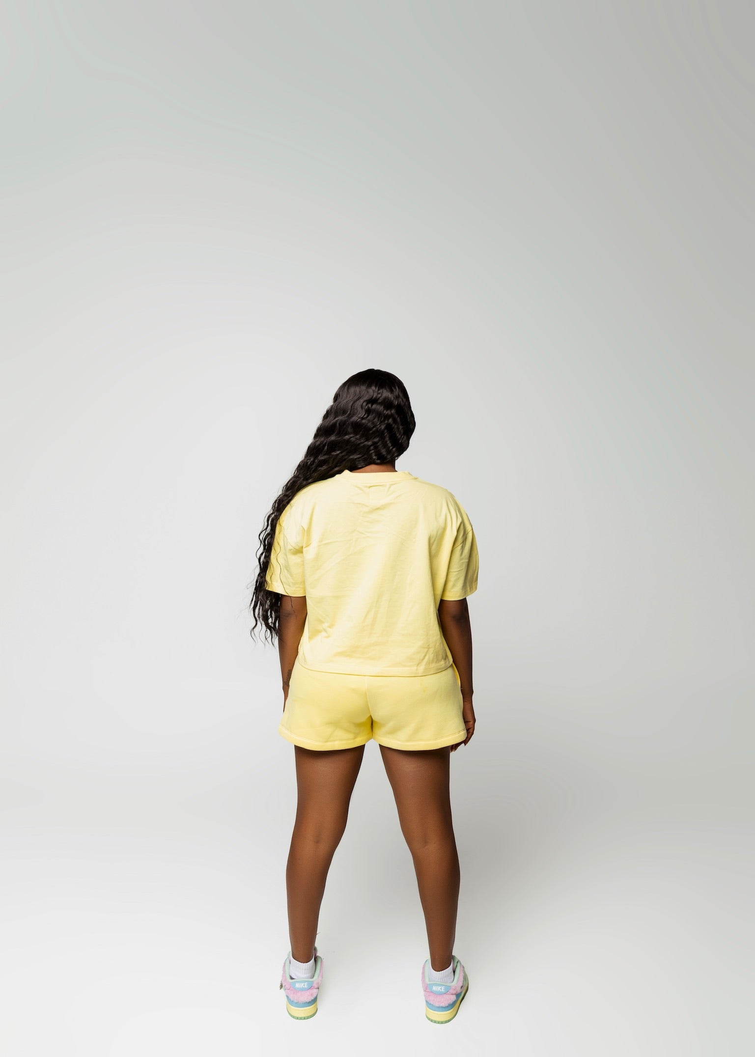 Step into comfort with style in these soft Yellow shorts featuring an elastic waistband, adjustable drawstring, and cozy fleece-like lining. Finished with the embroidered JYVES logo in vibrant pink, these shorts are perfect for lounging or elevating your casual look.